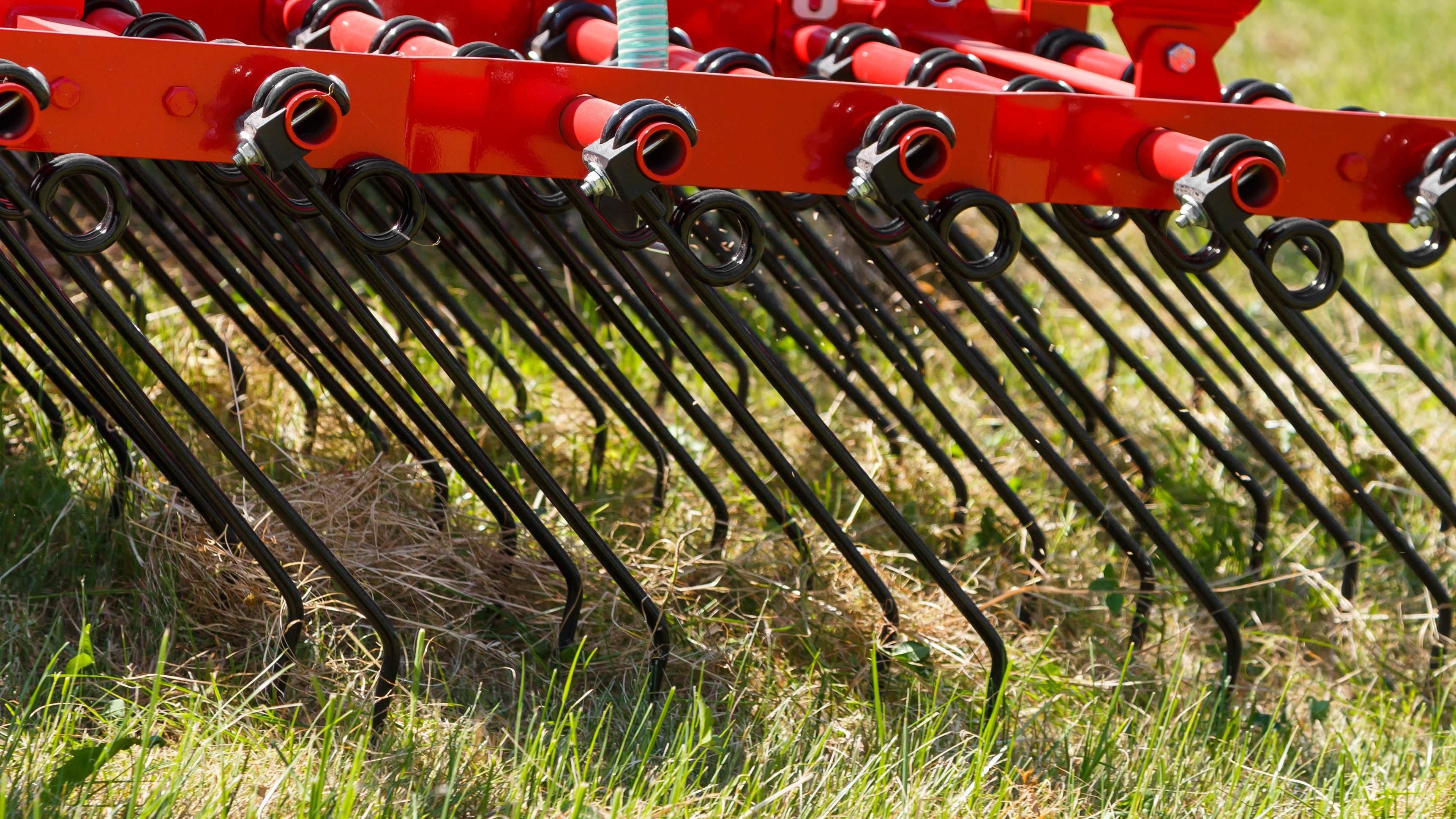 Das optimale Pflegegerät von Frühjahr bis Herbst. Das Striegeln regt die Bestockung an, Maulwurfshaufen werden sauber eingeebnet, Verfilzungen beseitigt.
